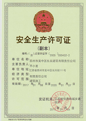 蘇州市吳中區東吳建筑有限責任公司,具有房屋建筑施工總承包一級、裝飾裝修工程設計與施工二級一體化資質、機電設備安裝三級資質、市政公用總承包三級資質企業,通過ISO9001質量管理體系認證、資信等級AAA級。